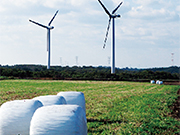 睦栄風力発電所は国産の大型風車5基にて運営しています。総発電出力は10,000kWで、村内の全世帯数に相当する約5,000世帯が1年間に消費する電力量を発電しています。風車の周囲では村特産の長芋や、家畜に食べさせる牧草やデントコーンの作付けが行われております。当発電所は地元の農家さんと共存し、風力発電事業を通じて地域の発展に貢献していきたいと考えております。